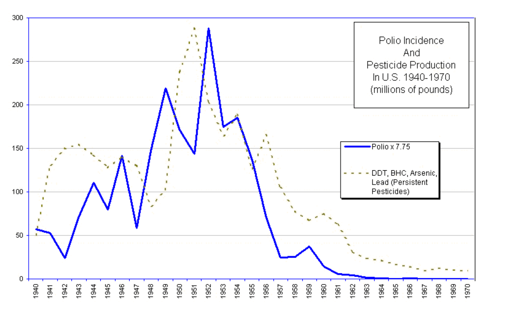 When you overlay the DDT production with the lead arsenate graph, the correlation to paralytic “polio” is unmistakeable. I’ll add the graph later.