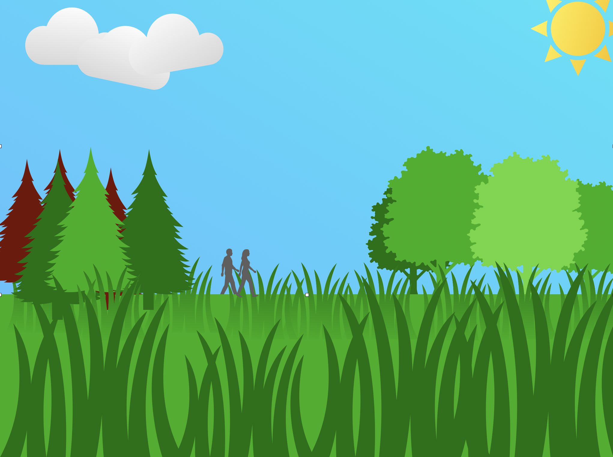After it was done, I proudly shared a screenshot of it with a Facebook group of animated video makers. Much to my surprise, one of them pointed out that there’s a tiny white square, smack in the middle of the image, on the horizon. Oops! It’s a little handle, indicating that the green block of grass was “active” when I took my screenshot.